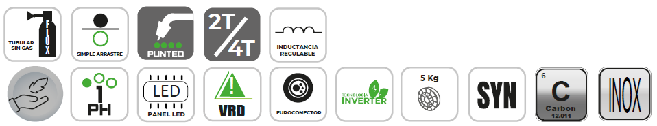 Adecuado para procesos MMA, TIG-LIFT y MIG-MAG/FCAW-S (autoprotegido sin gas).